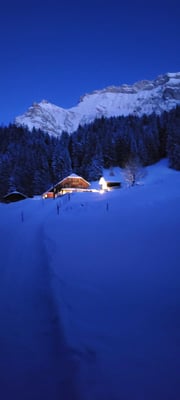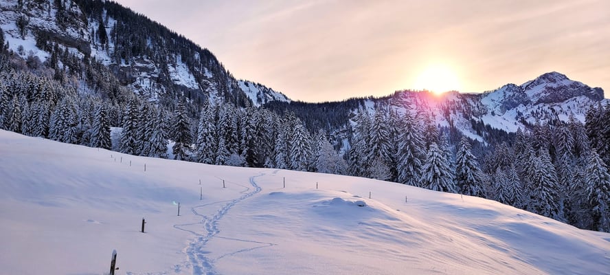 Kurze Schneeschuhtour mit gemütlichen Abendessen in der Alpwirtschaft Unterlauelen